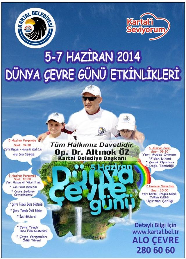 5 – 7 Haziran Dünya Çevre Günü, tüm dünyada olduğu gibi Kartal’da da çeşitli etkinliklerle kutlanacak.
