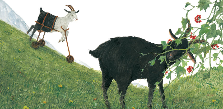 Çoban, yavrunun hayatını kolaylaştırmak için önceleri onu korur kollar ama çok geçmeden onun için çok yaratıcı bir çözüm üretir. Artık sevimli oğlak da sürüden ayrı düşmeyecek ve hayatını kendi başına sürdürür.