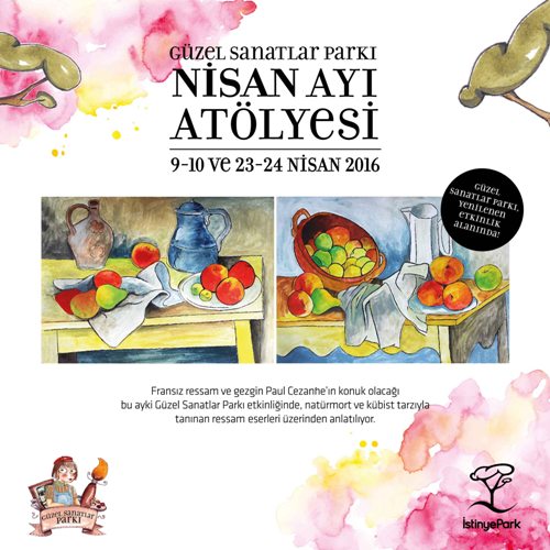 Güzel Sanatlar Parkı Cézanne Atölyesi, 23 Nisan Ulusal Egemenlik ve Çocuk Bayramı etkinlikleri kapsamında Nisan ayında İstinyePark Alışveriş Merkezi Güzel Sanatlar Parkı’nda çocuklarla buluşacak. Güzel Sanatlar Parkı Cézanne Atölyesi’nde çocuklar, sanatçıdan ilham alarak kendi natürmort eserlerini tasarlayacaklar.