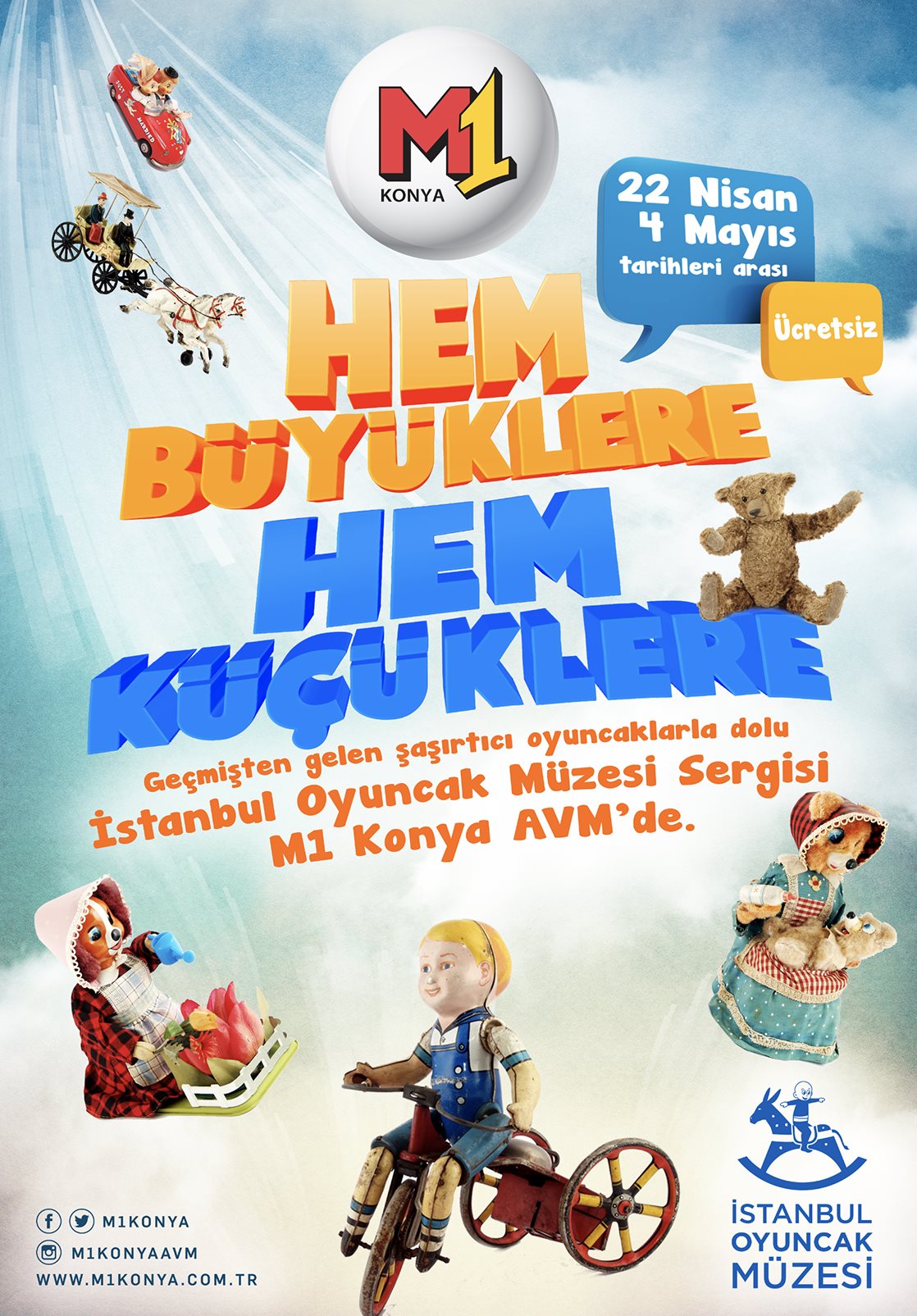 22 Nisan ile 4 Mayıs tarihleri arasında, M1 Konya AVM ziyaretçileri, İstanbul Oyuncak Müzesi Sergisi’ni gezebilecek. Ücretsiz olarak gerçekleştirilecek etkinlikte, İstanbul Oyuncak Müzesi’nde bulunan birçok eser yer alacak.