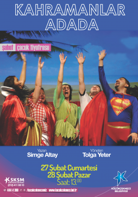 Kahramanlar Adada, Şubat ayında Sefaköy Kültür Merkezi’nde çocuklarla buluşacak. Uzun zamandır hikaye yazan Peter, yazamaya çalıştığı hikayeye en sevdiği kahramanlar olan Süpermen, Benten, Pamuk Prenses ve Kırmızı Başlıklı Kız’ı ekler. Kahramanların bir araya geldiği adada eğlence ve heyecan kaçınılmaz olur. Böylece macera başlar.
