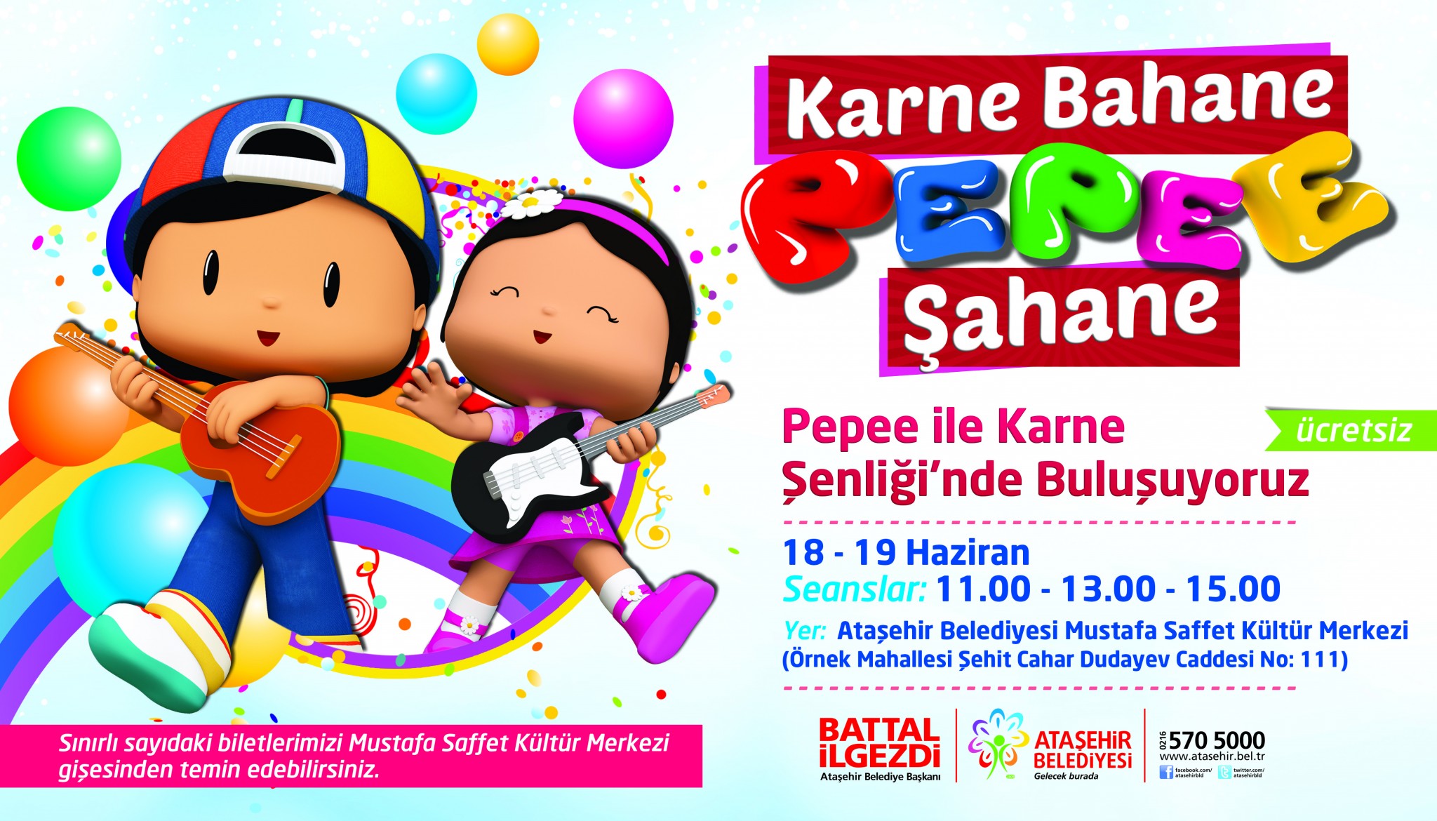 Karne Bahane Pepee Şahane, Haziran ayında Ataşehir Mustafa Saffet Kültür Merkezi’nde çocuklarla buluşacak. Karne şenlikleri kapsamında gerçekleşecek olan etkinlikte çocuklar, ekranlarda ilgi ile izledikleri çizgi dizi Pepee’nin kahramanları ile bir araya gelecek. Etkinlik ücretsiz olarak çocuklarla bir araya gelecek. Biletler ise sınırlı sayıda olacak.