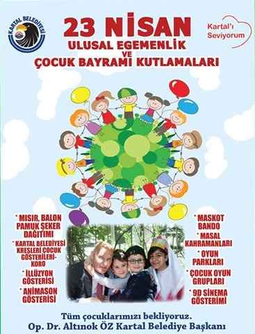 Kartal Ulusal Egemenlik ve Çocuk Bayramı etkinlikleri kapsamında, 23 Nisan Pazar günü Kartal Meydanı’nda tüm çocukların katılabileceği eğlenceler düzenlenecek.