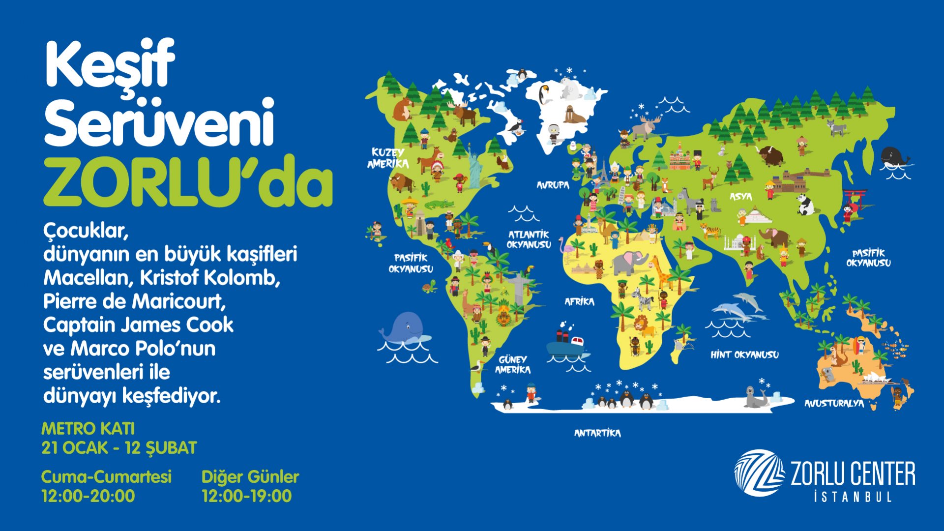 Sömestr AVM etkinlikleri kapsamında Zorlu Center’da gerçekleşecek olan Keşif Serüveni 21 Ocak Cumartesi gününden itibaren ziyarete açılacak. Tüm çocukların 21 Ocak – 12 Şubat tarihleri arasında her gün, ücretsiz katılım sağlayabileceği etkinlik, çocukları dünyanın keşfine tanık edecek.