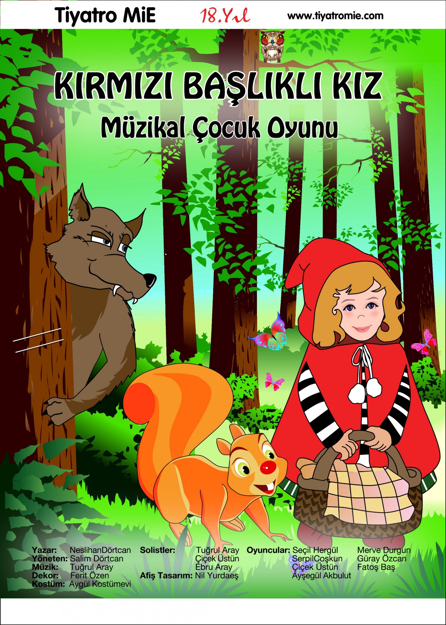 Kırmızı Başlıklı Kız çocuk tiyatroları ocak Ayında Halis Kurtça Kültür Merkezi’nde Tiyatro Mie’nin sunumuyla minik seyircileriyle buluşuyor. Günlerden birgün Kırmızı Başlıklı Kız arkadaşı sincap ile oyunlar oynarken annesi yanlarına gelir ve elinde bulunan kek dolu sepeti büyük annesine götürmesi için Kırmızı Başlıklı Kızdan rica eder. Bunun üzerine Kırmızı Başlıklı Kız ve sincap büyük annenin yanına gitmek üzere yola çıkarlar. Sincap ve Kırmızı başlıklı kız ormanda oynaya oynaya giderken birden hain kurt kekin kokusunu duyar ve onları takip eder. Kırmızı Başlıklı kız ve sincabın yardıma ihtiyacı vardır ve yolculuklarında onları büyük sürprizler beklemektedir. Çocukların keyifli vakit geçirecekleri müzik, dans ve tiyatronun bir arada olduğu bu keyifli macerayı kaçırmayın.