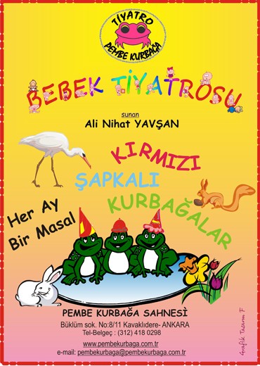 Kırmızı Şapkalı Kurbağalar, Şubat ayında Ankara Pembe Kurbağa Sahnesi’nde çocuklarla buluşacak. Kırmızı Şapkalı Kurbağalar, bebek tiyatrosu olarak bebeklerle bir araya gelecek. Oyun, kırmızı rengi çok seven bir kurbağanın hikayesini konu alacak. Kurbağa ve Minik Kuş kırmızıyı çok severler ve gördükleri her yer de almayı arzu ederler. Eğlenceli bir gün için Kurbağa kırmızı bir şapka takar. Böylece macera başlar.