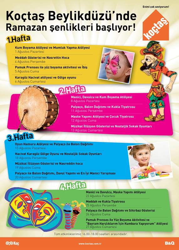 Ramazan ayının vazgeçilmez eğlencesi Karagöz ve Hacivat gölge oyunları, çocuk tiyatrosu ve atölyeler Koçtaş Beylikdüzü AVM’de.
