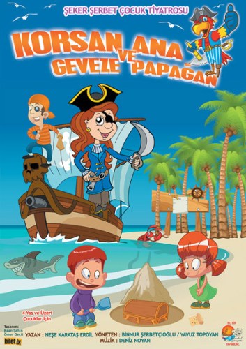 Korsan Ana ve Geveze Papağan, Mart ayında Kozyatağı Kültür Merkezi Konferans Salonu’nda çocuklarla buluşacak. Oyunda çocuklar, hazine adasında neşeli ve kıpır kıpır bir maceraya atılacaklar. Korsan Ana, çalışmadan kolay yoldan zengin olmak ister. Korsan Ana, sadece yan gelip yatmak isteyen Miço, konuşmayı çok seven Geveze Papağan yakalandıkları fırtına sonrası bir adaya düşerler.