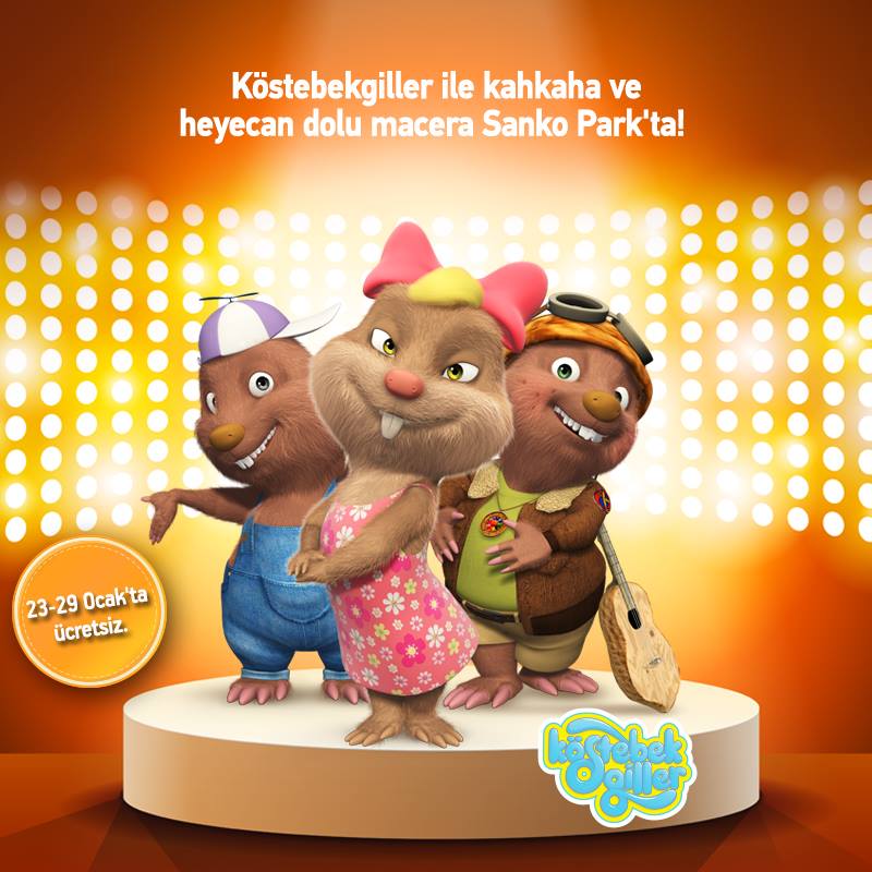 23 Ocak – 29 Ocak 2016 tarihlerinde, Köstebekgiller Sanko Park’ta çocuk hayranlarıyla buluşacak. Çocukların sevdiği çizgi karakterler arasında yer alan Köstebekgiller, eğlenceli şovlarıyla, Gaziantep sömestr etkinlikleri boyunca çocukların karşısında olacak.