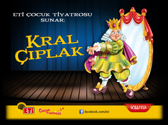 Eti Çocuk Tiyatrosu, Kral Çıplak isimli oyunu çocuklarla buluşturuyor. Gösterişli kıyafetler giyen bir kralın doğum günü partisini anlatan tiyatro oyunu, Milli Eğitim Bakanlığı’nın önerdiği 100 Temel Eser listesinde de yer alıyor. Çocuklar, Eti Çocuk Tiyatrosu ile Kral Çıplak isimli oyunu ücretsiz olarak görebilecek.