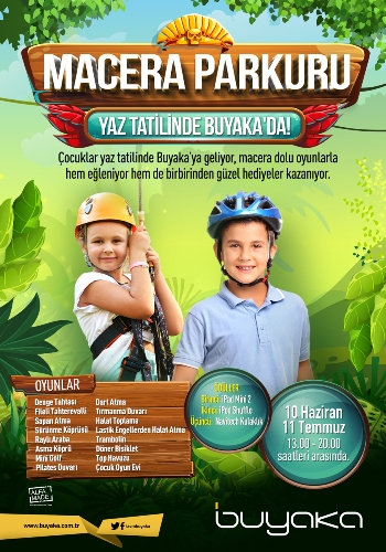 Macera Parkuru, 10 Haziran – 11 Temmuz 2016 tarihleri arasında Buyaka Alışveriş ve Yaşam Merkezi’nde çocuklarla buluşacak. Etkinlik kapsamında çocuklar hem eğlenecekler hem de hediyeler kazanma fırsatını yakalayacaklar.