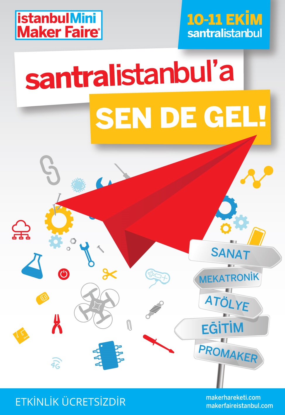Saat 10.00 ile 18.00 saatleri arasında gerçekleştirilecek olan Mini Maker Faire etkinliğine çocuklar ebeveynleri ile birlikte ücretsiz katılabilecek.