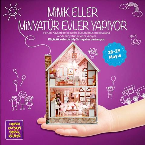 Minik Eller Minyatür Evler Yapıyorlar, Mayıs ayında Forum Kayseri Alışveriş Merkezi’nde çocuklarla buluşacak. Etkinlik, “Minyatür Evler” sergi ve etkinlik projesi kapsamında çocuklarla buluşacak. Minik Eller Minyatür Evler Yapıyorlar ile çocuklar, minyatür evler tasarlayarak renkli dakikalar geçirecekler.