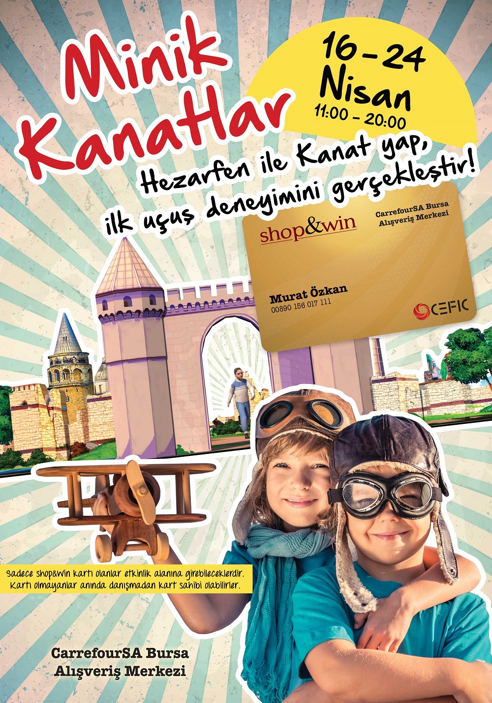 16-24 Nisan tarihleri arasında CarrefourSA Bursa AVM’de yapılacak olan Minik Kanatlar etkinliğine tüm çocuklar ücretsiz olarak katılabilecek.
