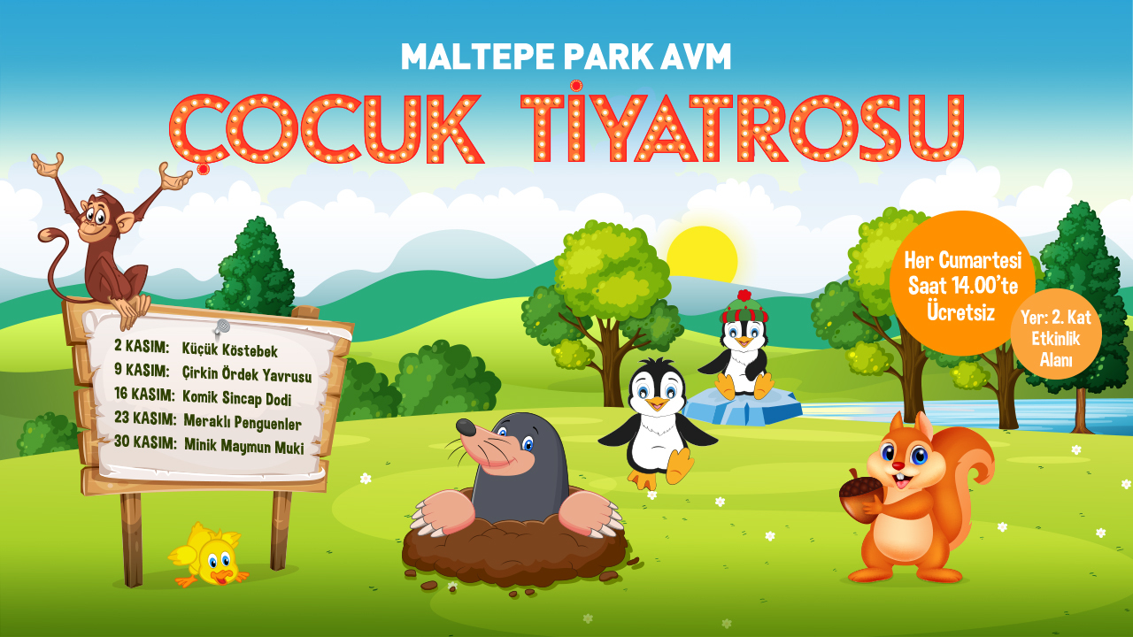Maltepe Park AVM Çocuk Tiyatrosu perdeleri açıyor. Her Cumartesi ücretsiz çocuk tiyatrosu saat 14:00’de Maltepe Park’ta!
