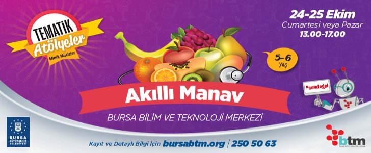 Bursa çocuk etkinlikleri kapsamında gerçekleşecek olan Minik Mucitler Akıllı Manav’da etkinliği, saat 13.00 ile 17.00 arasında gerçekleştirilecek.