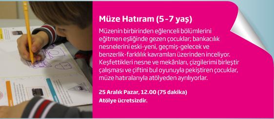 Türkiye İş Bankası Müze Hatıram Atölyesi 25 Aralık 2016 Pazar günü saat 12.00-13.15 arasında gerçekleşecek.