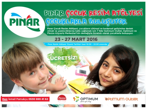 Pınar Çocuk Resim Atölyesi, Mart ayında Ankara Optimum Alışveriş Merkezi’nde çocuklarla buluşacak. Atölye, çocukların zihinsel, bedensel gelişimine ve yaratıcılıklarına katkı sağlamayı amaçlıyor. Etkinlik 23-27 Mart 2016 tarihlerinde, 10.00-20.00 saatleri arasında gerçekleşecek.
