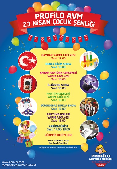 Profilo AVM 23 Nisan etkinlikleri, 23 Nisan Perşembe saat 12.00 ile 18.00 saatleri arasında gerçekleşecek.