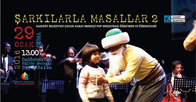 Şarkılarla Masallar 2, yarıyıl etkinlikleri kapsamında Ocak ayında Caddebostan Kültür Merkezi Büyük Salon’da çocuklarla buluşacak. Etkinlik, Kadıköy Belediyesi Çocuk Sanat Merkezi Pop Orkestrası öğretmen ve öğrencileri tarafından gerçekleştirilecek.