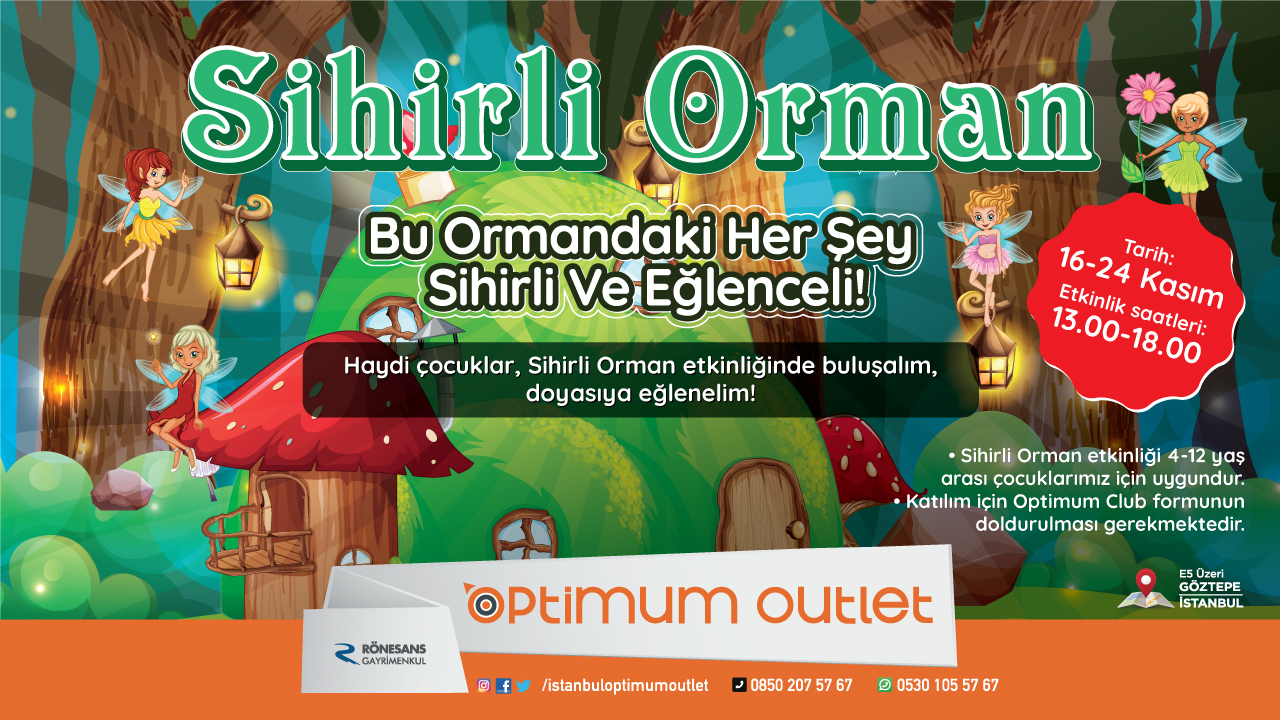 Sihirli Orman , bu ormandaki her şey sihirli ve eğlenceli. Optimum AVM’de gerçekleşecek etkinliğe tüm çocuklar davetli.