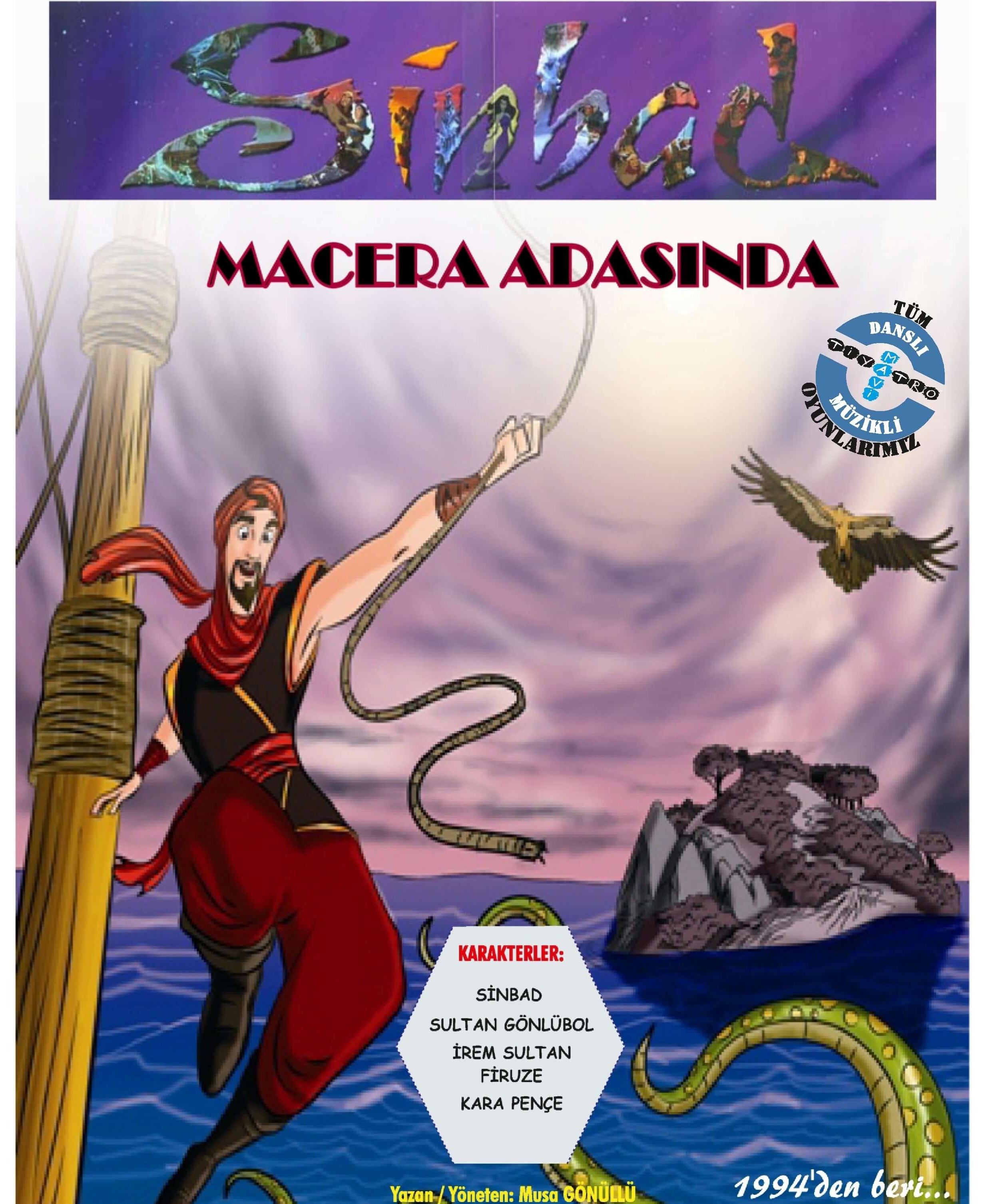 İstanbul sömestr etkinlikleri kapsamında Küçükçekmece Belediyesi tarafından düzenlenen Sinbad Macera Adasında Sefaköy Kültür Merkezi’nde sahne alacak. 4-9 yaş arası çocuklar için gerçekleştirilecek olan oyun, Sibad’ın İrem Sultan’ı koruyabilmek için Karapençe ile mücadelesini anlatıyor.