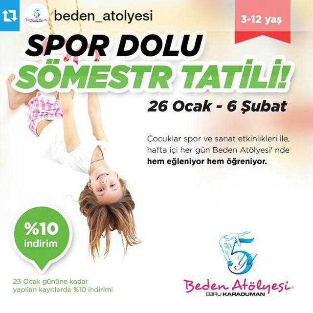Spor Dolu Sömestir spor etkinlikleri Beden Atölyesi’nde Ocak ve Şubat ayı boyunca sömestir çocuk etkinlikleri kapsamında. Çocuklara unutmayacakları bir sömestir tatili yaşatmayı hedefliyor. Etkinlik spor, sanat aktiviteleri ve farklı atölyeleri ile çocukları büyüleyecek. Sömestir okulu olarak hazırlanan etkinlikler sabah 09:30 ‘dan akşam 16:30’a kadar sürüyor. Çocukların hem fiziksel hem sosyal gelişime katkıda bulunan aktivitelere yer veren spor dolu sömestir çocuklatrın tüm yarıyıl boyunca zihninde er tutan okul temposunun izlerini silip onları yeni okul dönemine daha dinamik ve dinç hazırlarken onlara öğretirken öğretiyor.