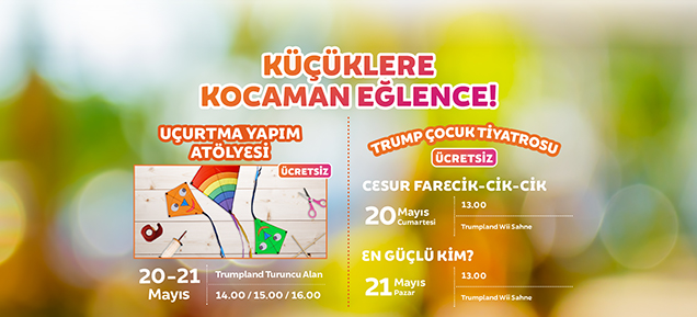 20 ve 21 Mayıs tarihlerinde saat 14.00, 15.00 ve 16.00’da yapılacak olan atölyenin yanı sıra, çocuklar Cesur Farecik Cik-Cik ile En Güçlü Kim adlı tiyatro oyunlarını da ücretsiz izleyecek.