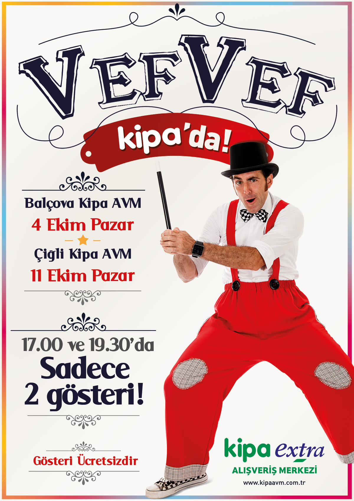 4 Ekim Pazar günü Balçova Kipa AVM’de ve 11 Ekim Pazar günü Çiğli Kipa AVM’de, 17.00 ve 19.30 saatlerinde, iki seans olarak gerçekleştirilecek VefVef Şov, Kipa AVM müşterilerine ücretsiz olarak sunulacak.
