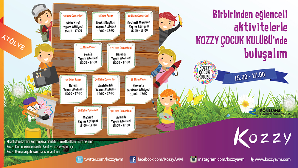 Kozzy AVM, Ekim ayı boyunca çocukları atölye etkinliklerinde buluşturacak.