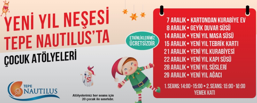 Tepe Nautilus Aralık Ayı Çocuk Atölyeleri devam ediyor. Ücretsiz etkinler için listeye bir göz atın.
