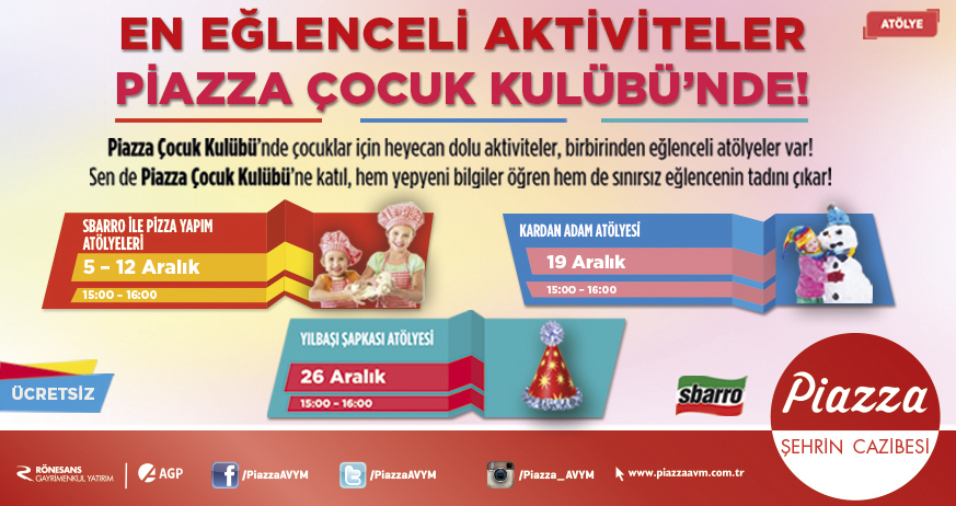 Kahramanmaraş Piazza AVM’de Aralık ayı boyunca devam edecek olan etkinlikere tüm çocuklar ücretsiz olarak katılabilecek.