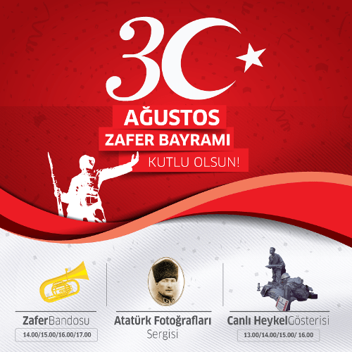 30 Ağustos Zafer Bayramı etkinlikleri kapsamında çocuklar, İzmir Park Alışveriş Merkezi’nde çeşitli etkinliklere katılma fırsatını yakalayacaklar. “Zafer Bandosu”, “Atatürk Fotoğrafları Sergisi” ve “Canlı Heykel Gösterisi” katılımcılarla bir araya gelecek.