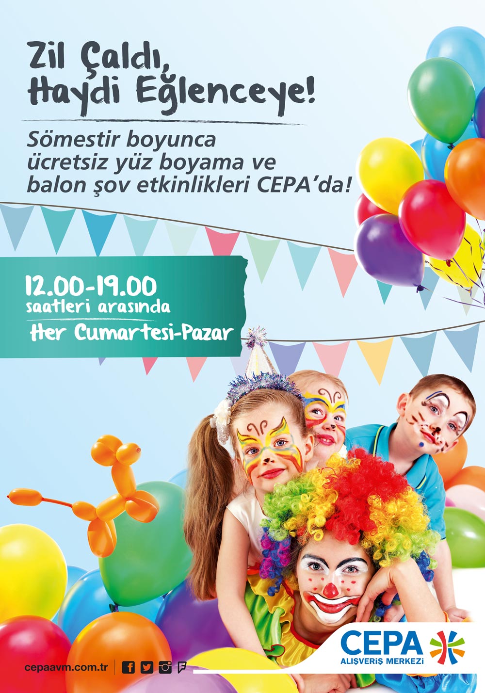Zil Çaldı Haydi Eğlenceye, yarıyıl tatil etkinlikleri sömestir tatili boyunca Ankara Cepa Alışveriş Merkezi’nde Ocak ve Şubat aylarında çocuklarla gerçekleşecek. Etkinlik tatil boyunca çocukların üzerinden okul stresini, yorgunluğunu atıp onları yeni döneme daha dinamik ve daha motive olmuş bir şekilde göndermeyi amaçlıyor. Bu eğlenceli program yüz boyama ve balon şovlarından oluşuyor.