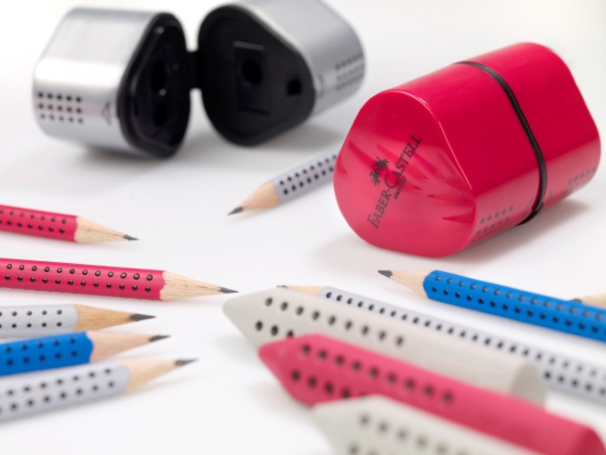 Faber-Castell’in üçgen Grip silgileri ve her türlü kalemi kolaylıkla açan Grip kalemtıraşları Grip 2001 kalemlerinin tamamlayıcısı oluyor.