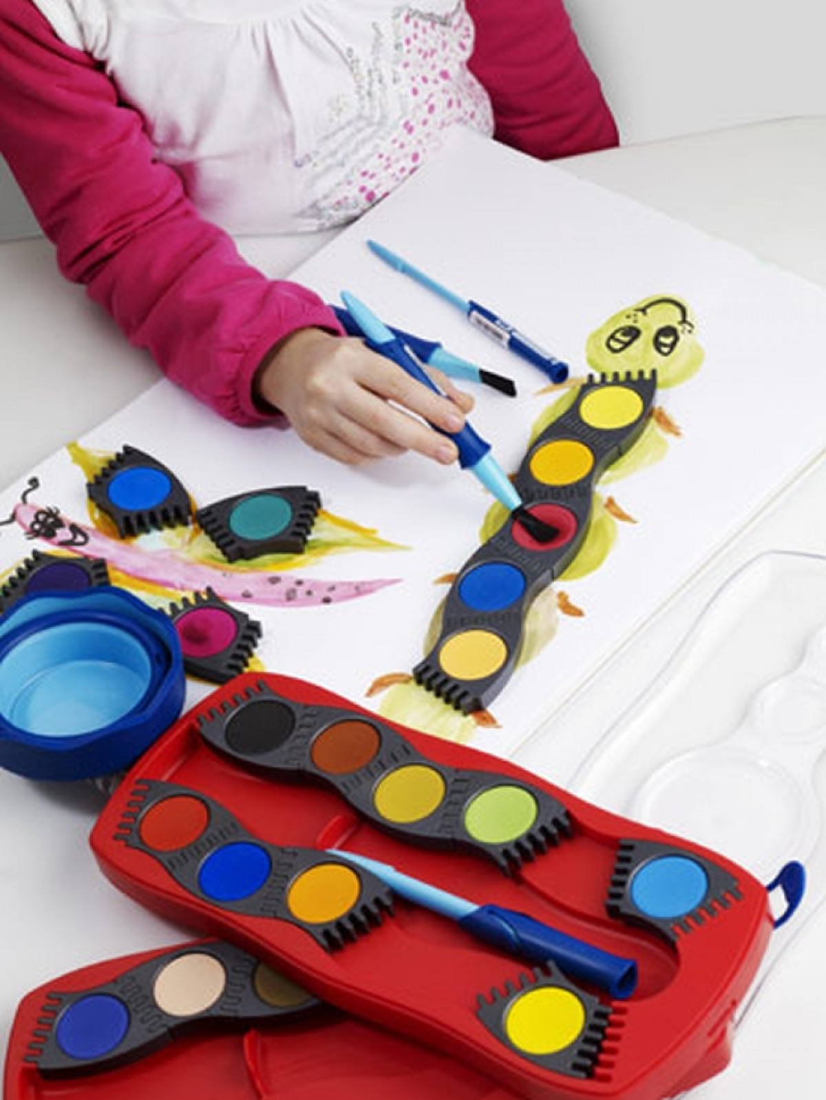 Tak-çıkar renk tabletleri sayesinde çocuklar farklı şekiller yaparak yaratıcılıklarını geliştirebiliyor. Parlak, canlı ve örtücü renklere sahip değiştirilebilir tablet suluboyaların 12 ve 24’lü seçenekleri bulunuyor.