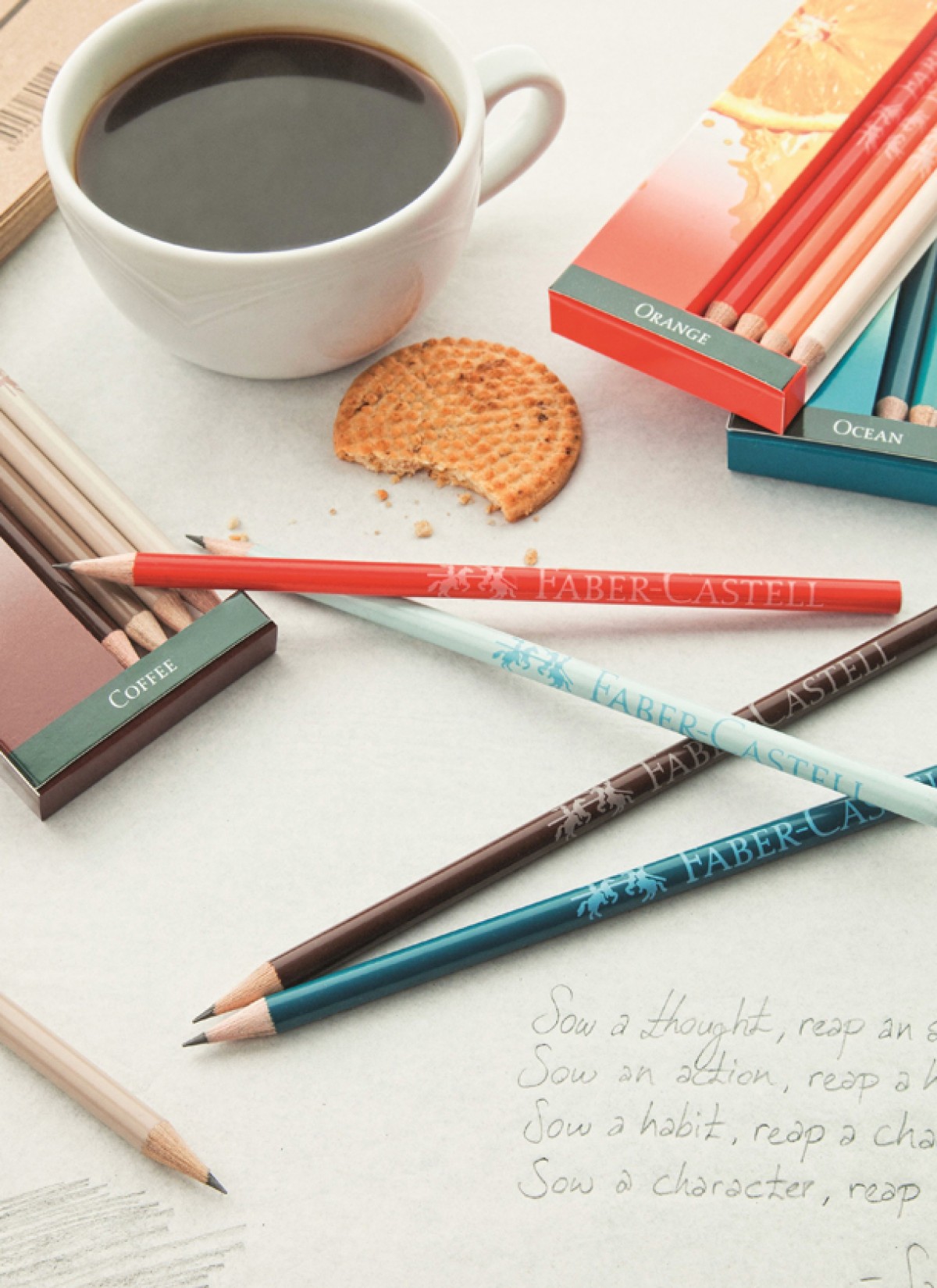 Ocean, Orange ve Coffee Kurşun Kalemler seyahat rotalarının unutulmaz anlarını yazıya dökmeyi arzulayanların olmazsa olmaz parçaları olarak ön plana çıkıyor. Faber-Castell’in özel kurşun kalem koleksiyonlarının tamamlayıcı ürünleri Natürel ve Bambu serisi A5 – A6 boyutlu defterler ise sert ciltli yüzeylerinin dayanıklılığı sayesinde yıllara meydan okuyor. Ucu kolay açılan ve iz bırakmadan silinen rengarenk Ocean, Orange ve Coffee Kurşun Kalemler, özel defter serisiyle beraber ölümsüz anlara tanıklık ediyor.