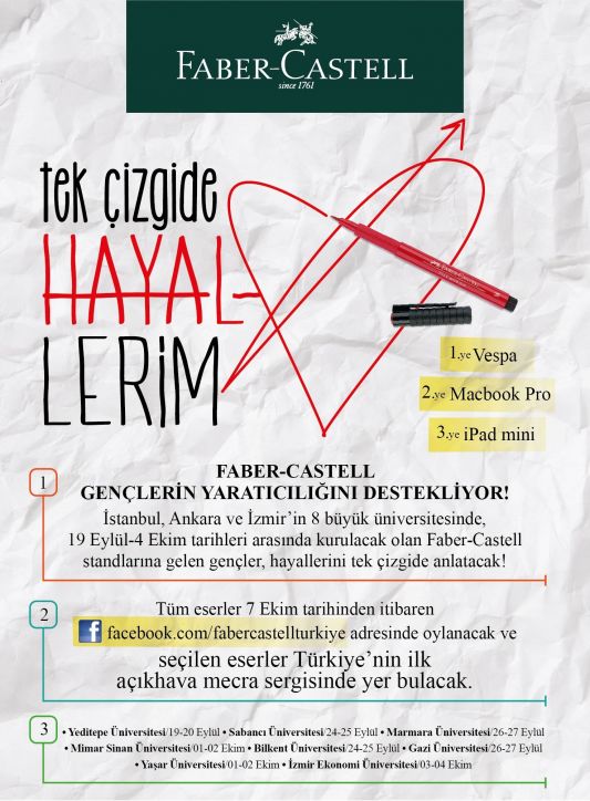 arasında kurulacak olan Faber-Castell stantlarında gençler hayallerini tek çizgide anlatacak.