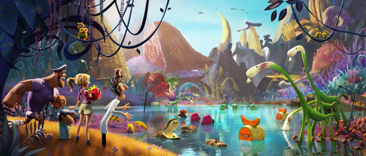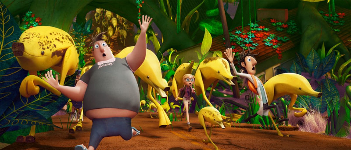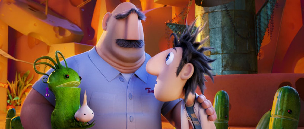 Animasyon filminin ilk serisinde, bir şeyler icat etmeyi çok seven Flint sudan yiyecek üreten bir makine icat edip, işler kontrolden çıkınca icadını tekrar imha etmesi gerekmişti.Türkçe dublajlı fragman: