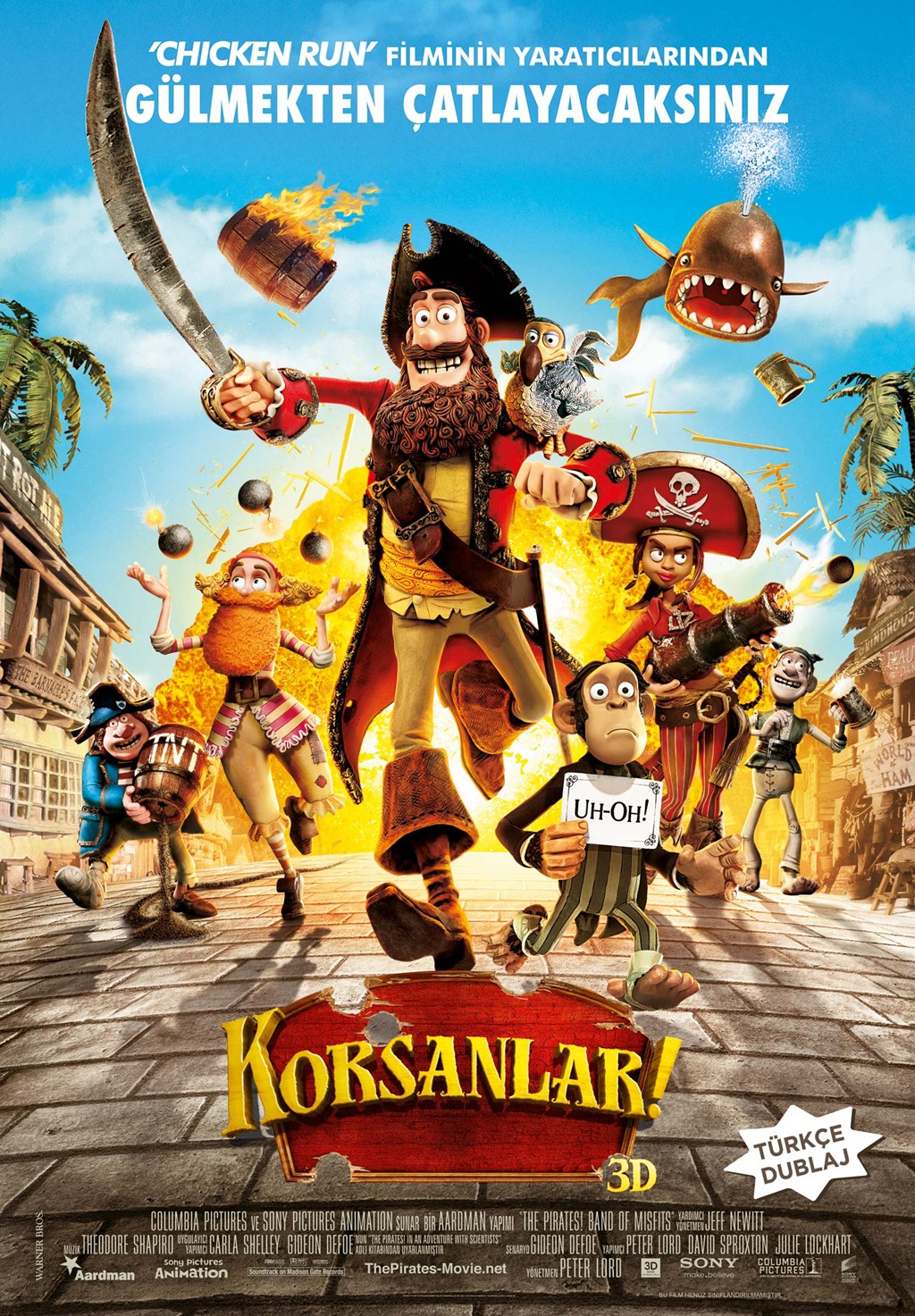 Columbia Pictures ve Sony Pictures Animation bir Aardman yapımı olan Korsanlar! / The Pirates! Band of Misfits’i sunar. Filmin orjinal seslendirme sanatçıları arasında Hugh Grant, David Tennant, Imelda Staunton, Martin Freeman, Jeremy Piven var.