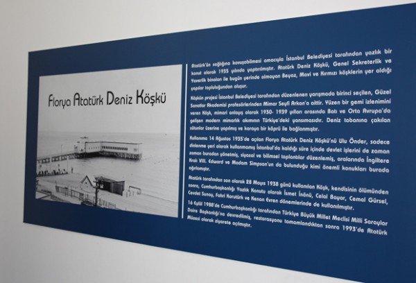 Atatürk Deniz Köşkü, deniz üzerinde adeta yüzen bir gemi izlenimi veriyor. Tek katlı binanın kuzey giriş cephesinde bir kule yer alıyor. İçerisinde; servis odaları, personel odaları, banyo ve tuvaletler, Atatürk’ün çalışma odası, yatak odası, banyosu ile kabul salonu yer alıyor.