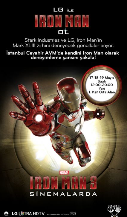 "LG ile Iron Man Ol” arttırılmış gerçeklik (Augmented reality) uygulamasında ziyaretçilere kendilerini Iron Man’e dönüştürme imkanı sunulacak. Aktivite alanına gelen ziyaretçiler aynı zamanda özel Iron Man 3D içeriklerini izleme, video oyunları oynama, sürpriz hediyeler kazanma ve LG’nin 2013 model Cinema 3D Smart TV’lerini de deneme şansına sahip olabilecekler.