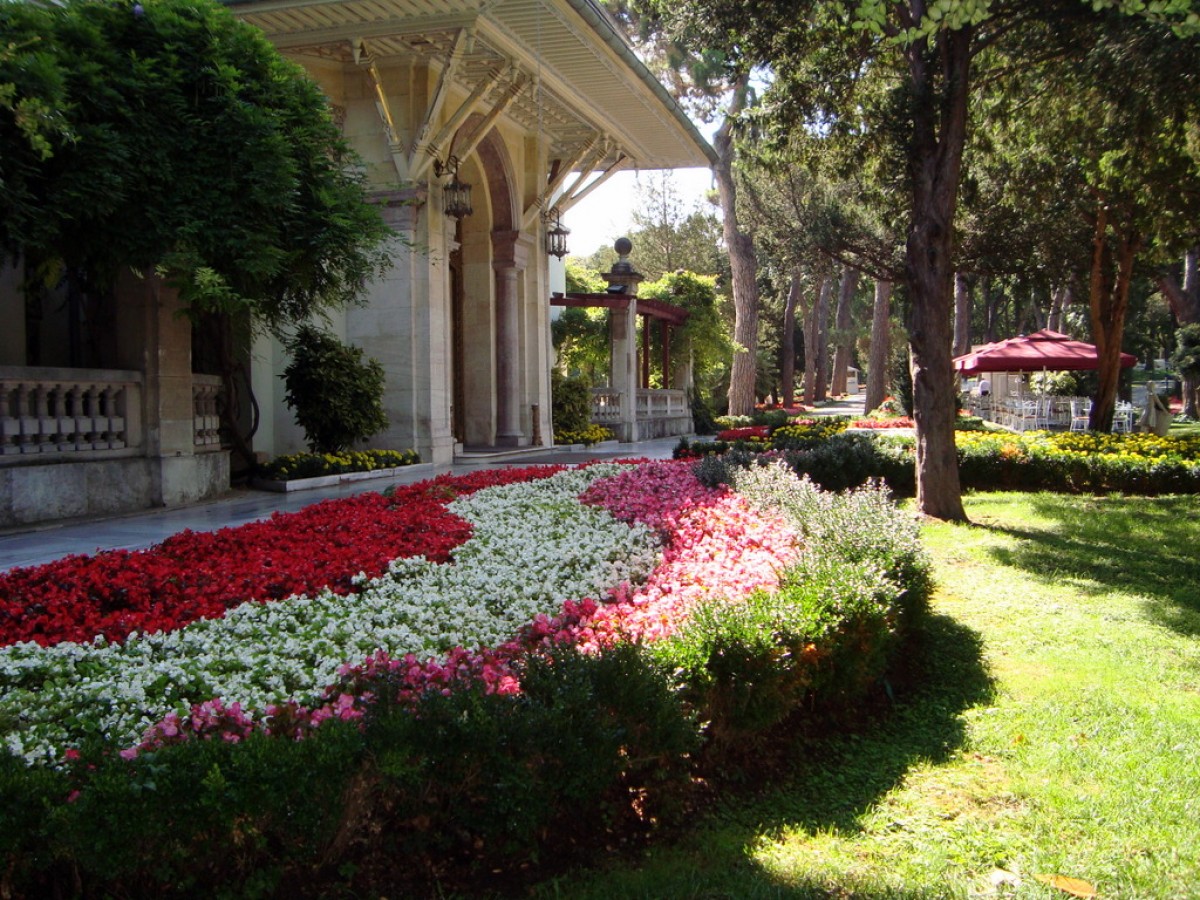 Mermer salondaki tüm mermer sütunlar özel cilalanmış. Sütunların içlerine ve salonun tavanlarına Türkiye’de ilk defa olmak üzere, yuvarlak çiçek globu şeklinde, pembe-beyaz-yeşil karışımı avizeler yaptırılmış. Yandığı zaman, bu bahçe tipindeki salona uyan renkleri ile bu avizelerin bir peri sarayı görünümü vermesi sağlanmış.