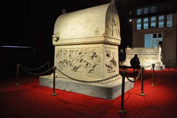 Arkeoloji Müzesi Binası, iki kattan oluşur. Giriş katının sağ tarafında Antik Çağ Heykelleri, sol tarafında ise dünyaca ünlü İskender Lahdi, Ağlayan Kadınlar Lahdi ve Tabnit Lahdi görülebilir. Binanın ikinci katında ise; Hazine Bölümü, Gayri İslami ve İslami Sikke Kabineleri ile Kütüphane bulunur.