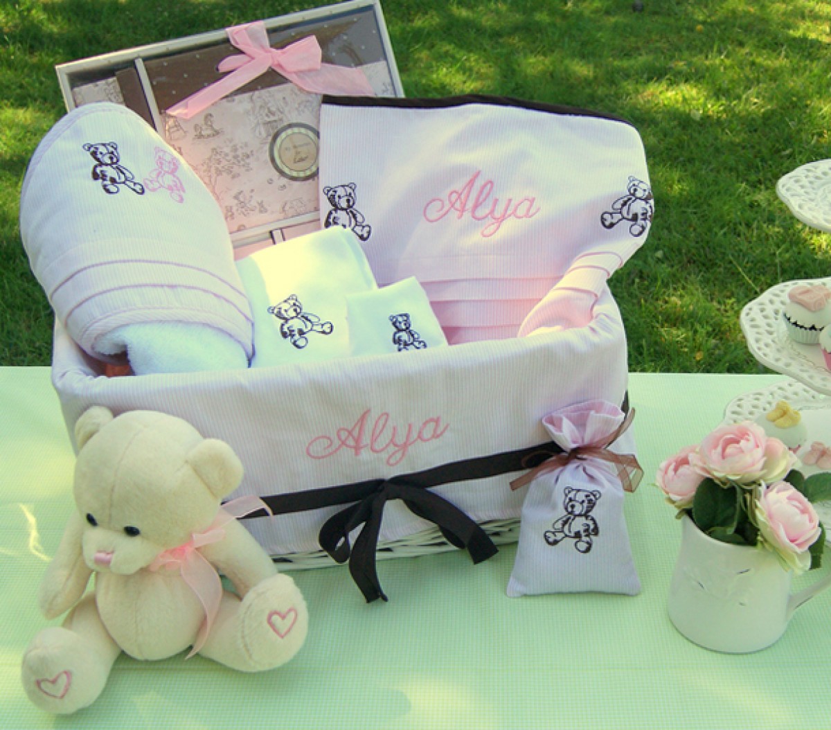 Kidomino’da şık desen alternatiflerinden birini ve nakışın rengini seçebilir, yazdıracağınız isim veya söz ile sadece o kişiye özel tasarımlar yaratabilirsiniz. Hediye olarak da şık hediye sepetleri alternatiflerinden birini seçebilirsiniz.