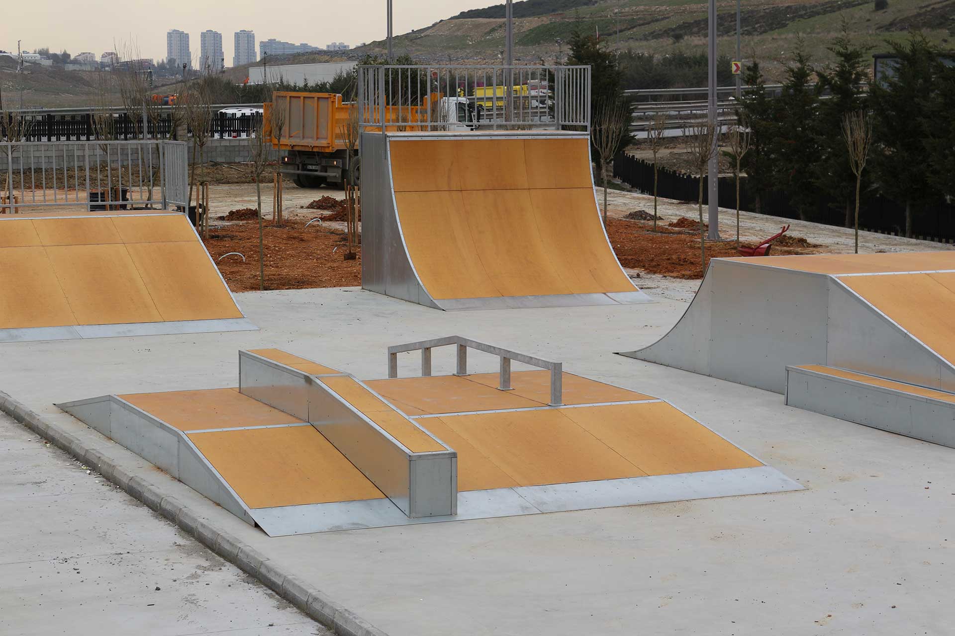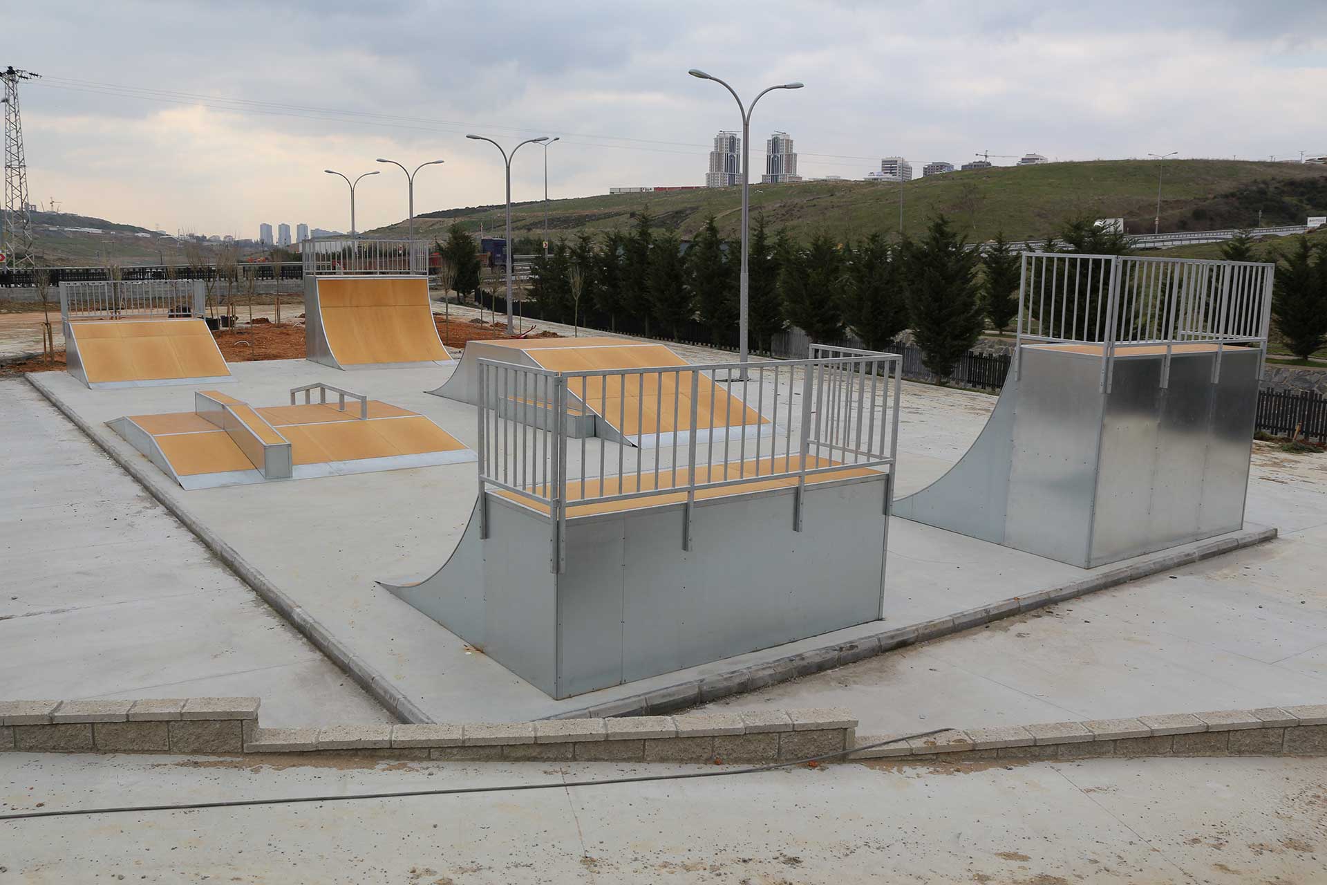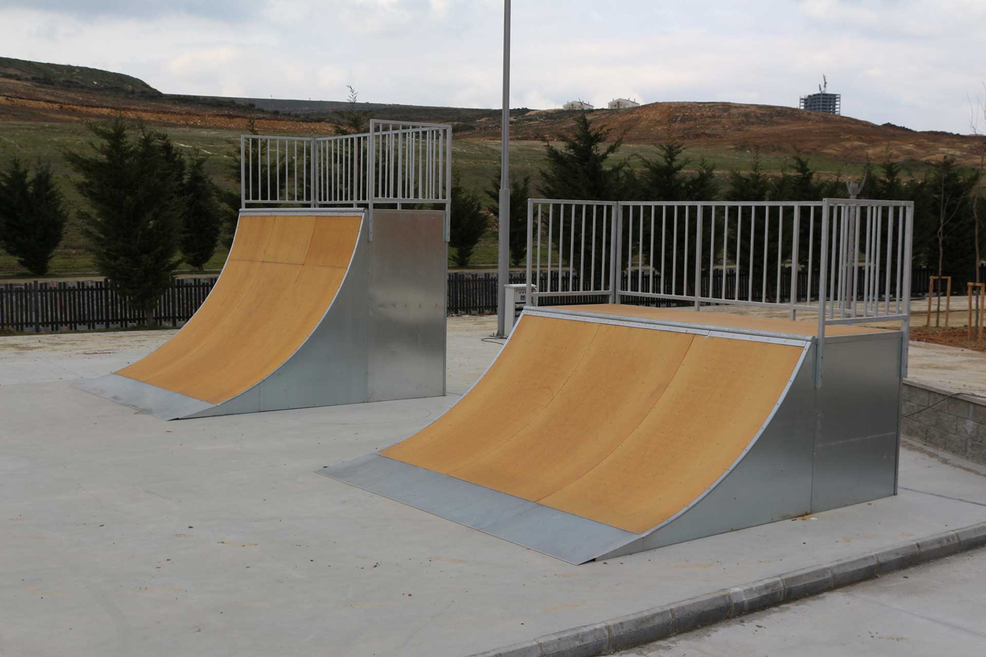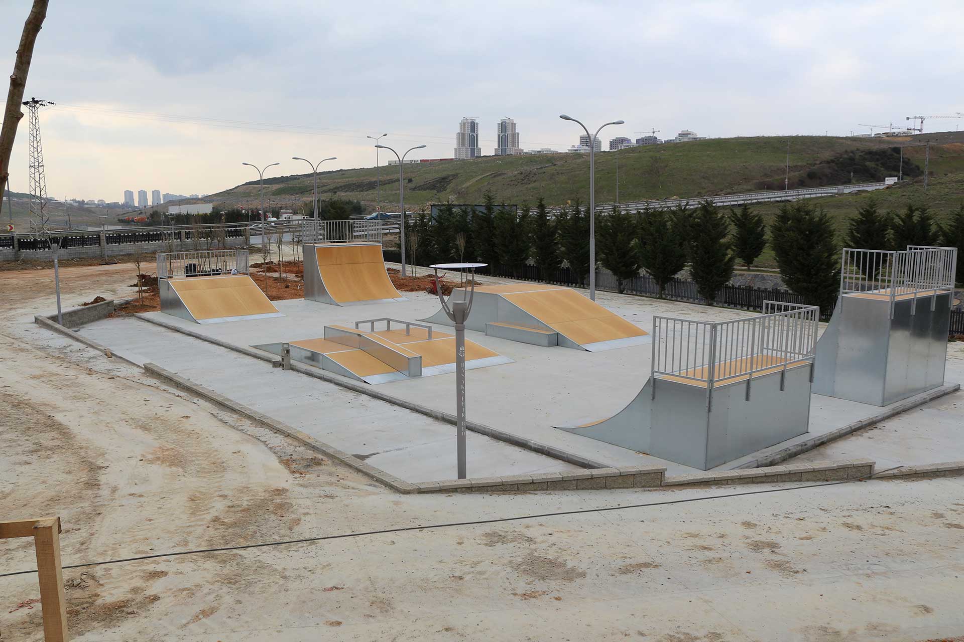 Çocukların en çok ilgisini çeken sporlardan biri olan kaykay ve paten için güvenli ve uygun bir ortam olan Başakşehir Skatepark’ta güvenlik ekipmanları kullanarak kaykay yapan sporcuların düşmesi durumunda zarar görmeyecekleri malzemeler kullanılıyor.