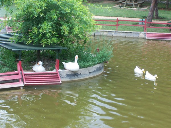 Bahçeye bitkilerin dışında bir kuş cenneti de diyebiliriz. Güvercinden, tavuğa, tavus kuşundan ördeğe birçok hayvanla karşılaşabilirsiniz.