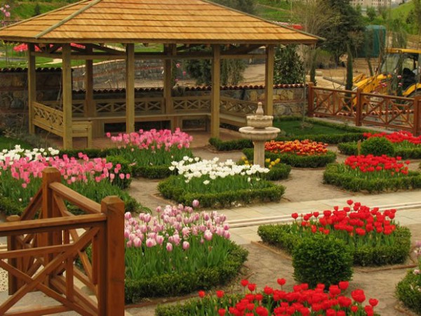 Bahçede İstanbul’u anımsatan her şeye rastlamak mümkün. Münyatür Kız Kulesi, Boğaz Köprüsü, Galata Kulesi, ve İstanbul denilince akla ilk gelen çiçek olan lalelerle süslü.