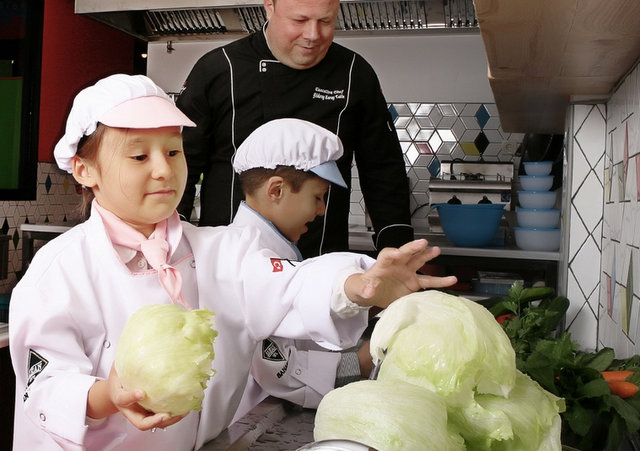 Çocuklar şefler eşliğinde; sebze ve meyve yıkama ile ayıklama işlemlerini yapıyor, yapacakları yemek, tatlı ya da salatada kullanacakları malzemeleri yine şefler gözetiminde düzenliyor. Pişirme aşaması ise şefler tarafından gerçekleşiyor.