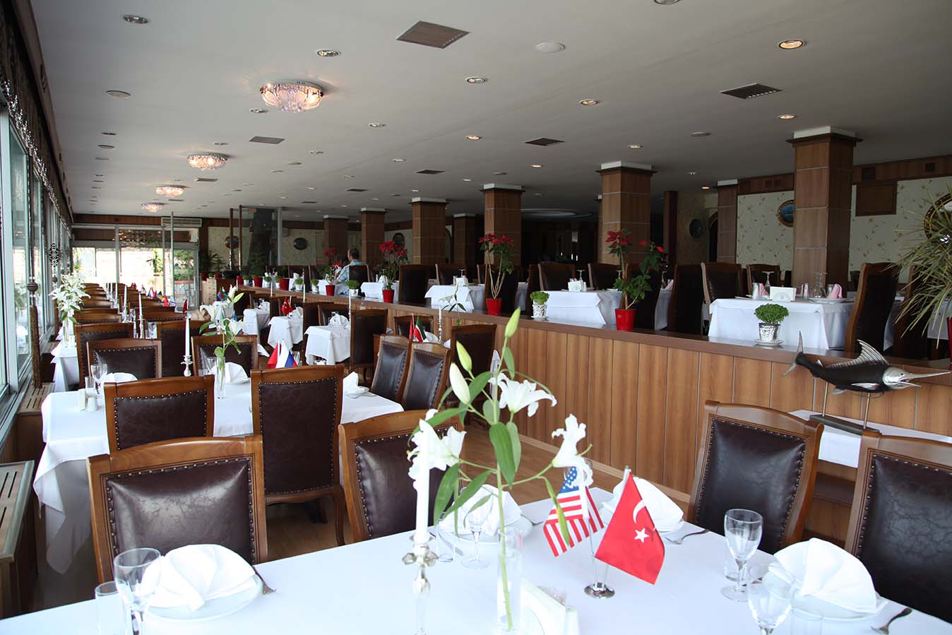 Deniz ürünleri ile zeytinyağlılardan oluşan geniş bir menü sunan restoranda alkollü ve alkolsüz içerikler yer alıyor.